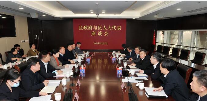 12月7日下午,區委副書記、區長高奕奕主持召開區政府與區人大代表座談會,專題聽取區人大代表對《政府工作報告》(征求意見稿)的意見建議。區委常委、副區長鄭益川,區人大常委會黨組副書記吳志宏,區領導丁炯炯出席座談會。