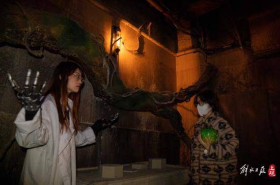 畢業于上海理工大學的張靖雯,在徐匯區一家密室做了一年半NPC。她敏銳地發現了這一變化:“去年我剛入職時,來密室玩的主要是20來歲有經驗的玩家,他們通常很了解密室游戲的規則,也非常配合NPC的演繹和指令。但現在來密室的玩家多是新手,初中生也有,NPC的引導任務會更重。”