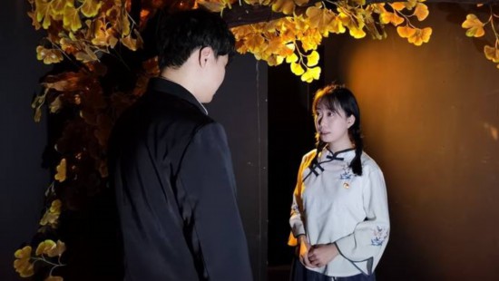 唐得力(左)和另一名NPC演繹密室劇目《紅色戀人》中的交易場景 。 孟雨涵 攝