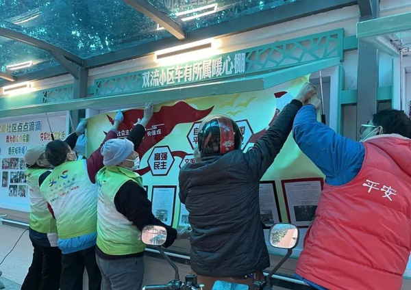 走進雙流小區,就可以看到主干道旁矗立著一座嶄新的藍綠色車棚,外觀清新雅致,車棚內的地面、墻壁、頂棚均煥然一新!半p流小區車有所屬暖心棚”地方不大,但處處都是暖心的設計。