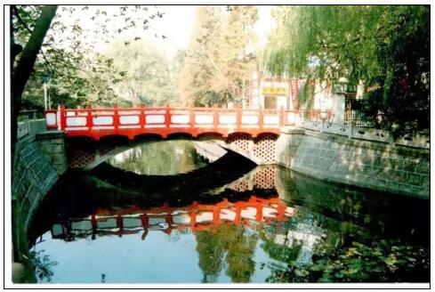 老照片的右邊的空地,就是現在靠近環浜邊上的一個休閑、健身綠地。一對年輕人在紅橋上相聚,推測男子是騎著自行車來的,雙方臉露微笑,幸福的指數,全寫在臉上!看到老照片上的自行車,也會聯想到人民生活的提高:那個時候買一輛自行車,一個工人要有幾個月的‘精打細算’,節存好幾個月的無法結余,而結余下來的工資,才能買一輛自行車,F在,即使企業退休工人的工資不高,但一個月的退休金也能買幾輛自行車。在這里老人們也享受了年輕人的艱苦創業和對社會的貢獻,老人也不會忘記年輕人的奉獻!