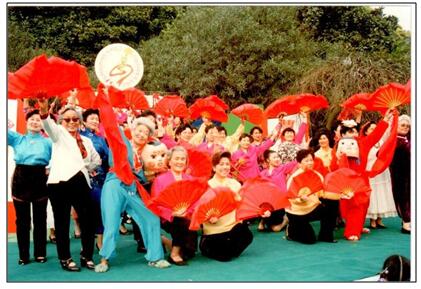 “老媽媽合唱團”表演扇子舞