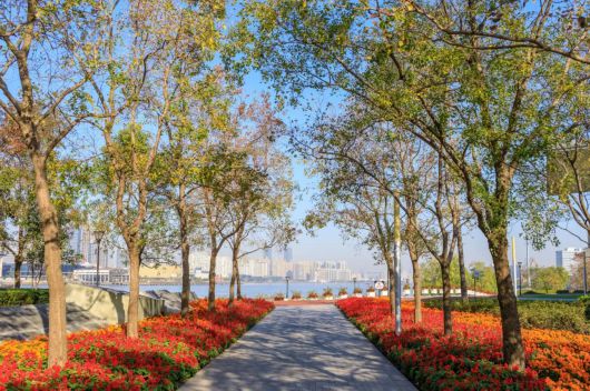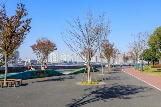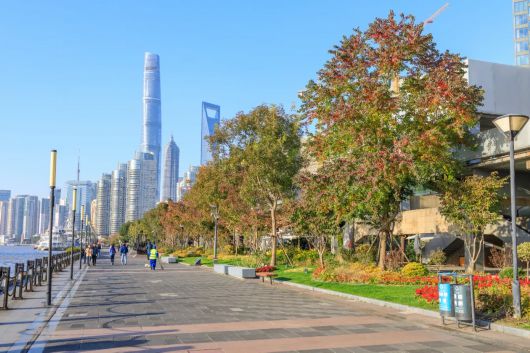 市綠化市容局介紹,深秋季節,漫步在22公里的東岸濱江沿線,滿目皆是醉人的斑斕景色。烏桕、楓香、櫸樹、梧桐、無患子、銀杏……彩色畫卷,盡收眼底,讓人沉醉其中。讓我們沿著東岸濱江,欣賞秋色吧↓