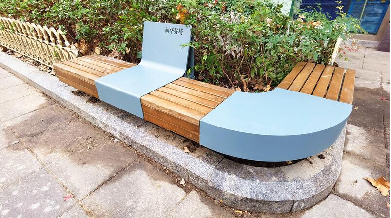 最近,經過新華路郵局的居民發現,大門兩側原本長方形的綠化帶各少了一個角,取代圍欄的是兩張頗具設計感的轉角長凳,上面有“新華好椅”的鏤空字樣。