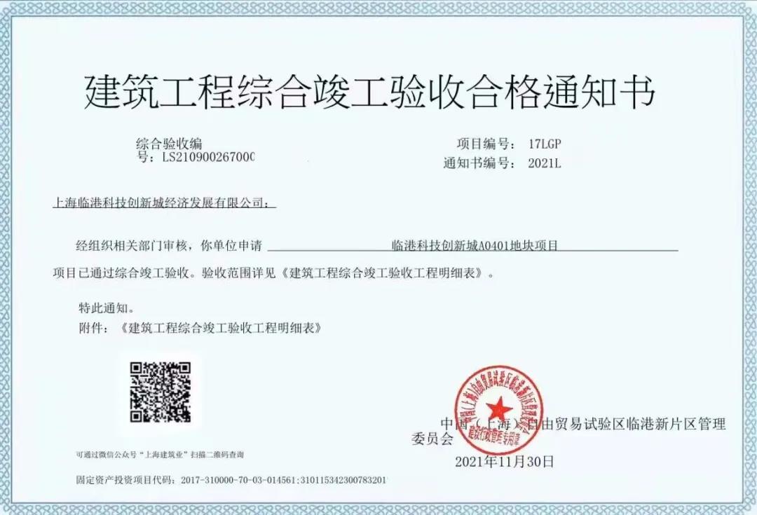 近日,臨港新片區創新魔坊二期智英科技中心項目獲得了綜合竣工驗收合格證書。