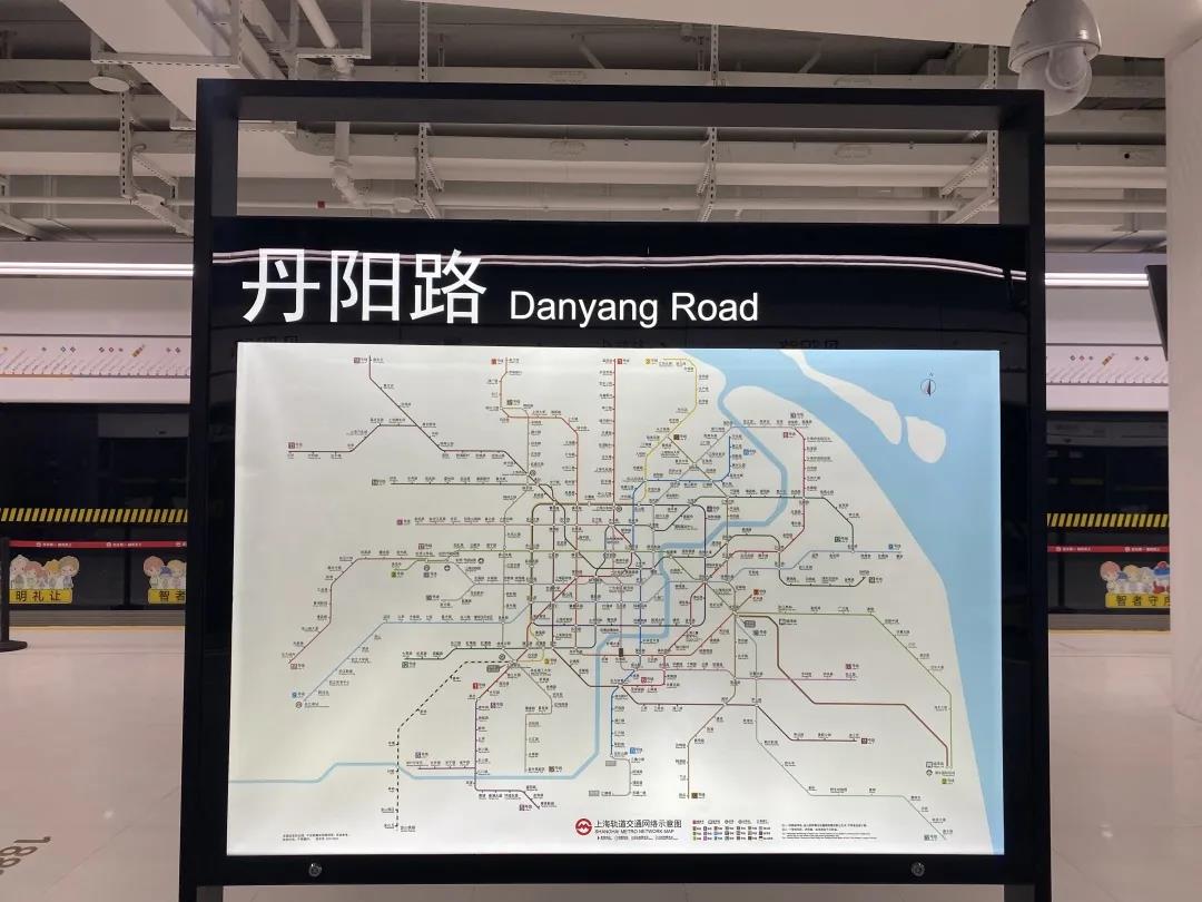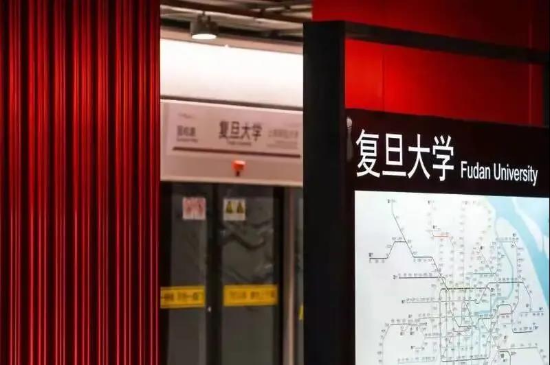 記者從18號線龍陽路站搭乘,大約10分鐘左右的時間,就到達了丹陽路站。從丹陽路出發一路向北,乘坐5站就可以到達復旦大學站。從車廂走出來,丹陽路站撲面而來的就是滿滿的熟悉感,而復旦大學站更是讓人驚艷。