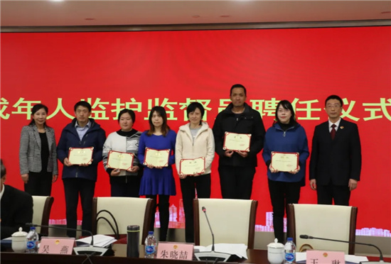 會上,虹口區檢察院與法院、公安、民政、教育、婦聯、團區委六家單位共同會簽《關于加強虹口區未成年人監護監督工作的意見》,聘任首批6名未成年人監護監督員。吳燕主任與朱曉喆副檢察長為6名監護監督員頒發聘書。