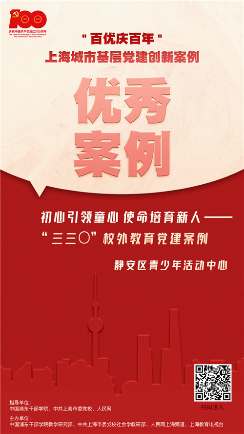 源于20年前的“三三〇”校外活動(后來發展為“三三〇”校外教育),一直是靜安區青少年活動中心(以下簡稱為“中心”)黨總支(早期為黨支部)引領開展,不斷豐富完善的優秀黨建品牌項目。20年來,中心黨總支持之以恒探索校外的育人模式和有效途徑,做實了“五育融合”,做亮了實踐育人,做強了校內外共育,在校外的育人大課堂里,擔負起了立德樹人的神圣使命。其二十年如一日的堅持實踐是人民城市理念的絕妙注解和生動詮釋。