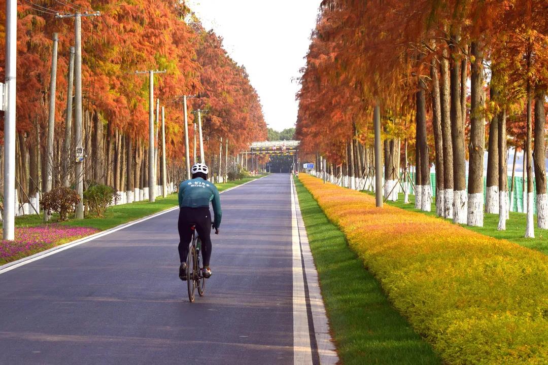 駕車行駛在太浦河北岸的林蔭道上,高大筆直香樟林矗立在路兩旁,綠蔭如蓋。陽光透過樹葉,在路面灑下斑駁光影,吸引不少騎行愛好者、自駕車主前來打卡。