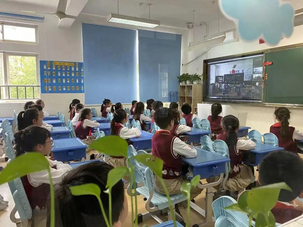 2021年的春天,東展小學師生不僅將圖書捐贈到了云南香格里拉格咱鄉小學,還與長寧區教育基金會一起,為格咱鄉小學的每一個班級定制了圖書柜,兩校的孩子們還通過網絡,開啟了視頻連線活動。