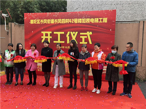 在長風馨苑34號電梯啟用的同時,長風四村42號樓的加梯也在如火如荼的進行中。在家住一樓的樓組長陳阿姨、熱心黨員居民羅阿姨和陳阿姨等的推動下,樓內業主積極參與加梯工作,最終讓長四一委第一部加梯順利開工,通向乘梯“終點站”。