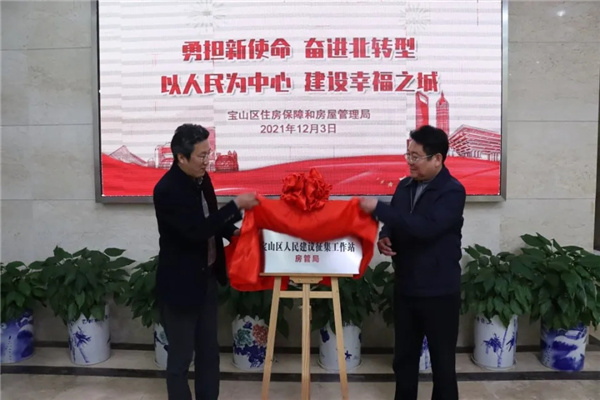 12月3日下午,寶山區房管局人民建議征集工作站、“彩虹橋”服務隊揭牌成立,寶山區人民建議征集辦公室主任張堅、房管局黨組書記、局長須慶峰出席儀式并共同揭牌。