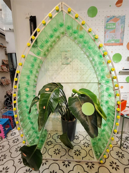 愚園路的“故事商店”日前變身為一座“小花園”。用回收塑料飲料瓶蓋、瓶身再生利用制成的“許愿樹”“花房”、服飾包包等展品,向市民傳遞低碳環保的可持續發展理念。展覽將持續至12月17日。