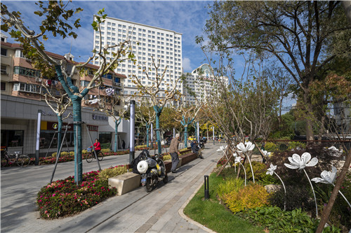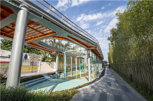 曹楊新村街道面積2.14平方公里,有常住人口近11萬,人口密度和建筑密度“雙高”,鐵路市場狹長區域的兩側就串聯著11個居住小區?臻g局促和利用率低,需要我們對城市空間的優化使用進行復合思考。鐵路市場關停后,街道通過四級“人民城市客廳”體系和“紅色議事廳”平臺,發揮全過程人民民主,充分征集民意聽取周邊居民意見,以構建“15分鐘社區生活圈”為主要功能定位,在慶祝中國共產黨成立100周年之際,因地制宜打造了多功能融合的立體式“百禧公園”。