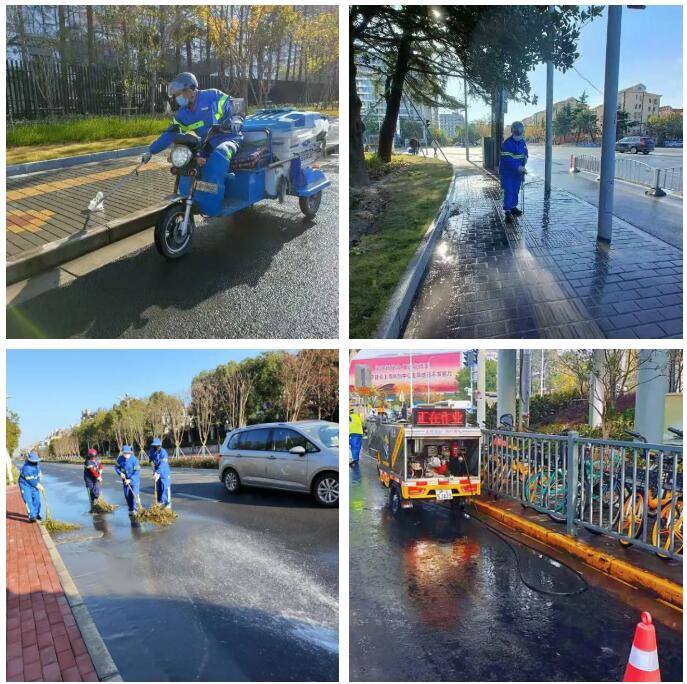 針對冬季易出現的揚塵霧霾問題,科學制定作業線路,進行“機械沖洗+人工推掃”的深度清洗作業模式,洗凈路面積存泥土砂石等,最大限度減少道路揚塵。
