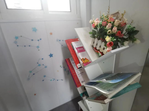 “當初有居民希望電梯加裝好后,有一個美觀的配套環境,于是,我們就借此機會,把這片空地和車棚一起改造;同時,結合美馨樓道工作,對多個樓層又進行了特色裝扮,有的設立了漂流書屋、攝影角,有的放上了小桌椅,成為一個民主議事的微型會客廳!苯值拦ぷ魅藛T說。