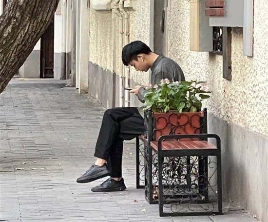 愚園路上,呂其明、曹鵬認捐認養的座椅