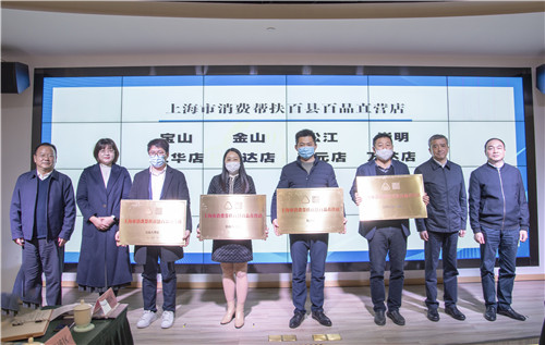 “百縣百品”直營店崇明萬達廣場店、金山百聯店、寶山大華店、松江開元店4家新增門店正式授牌。