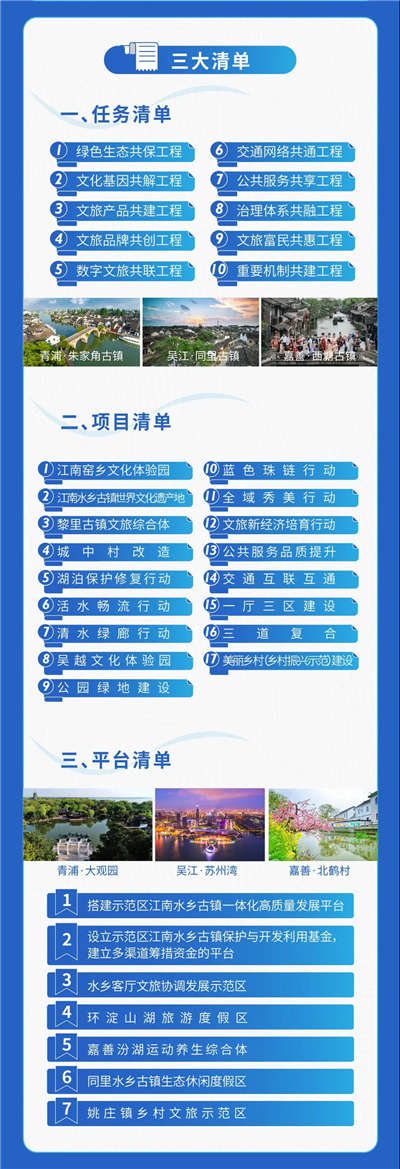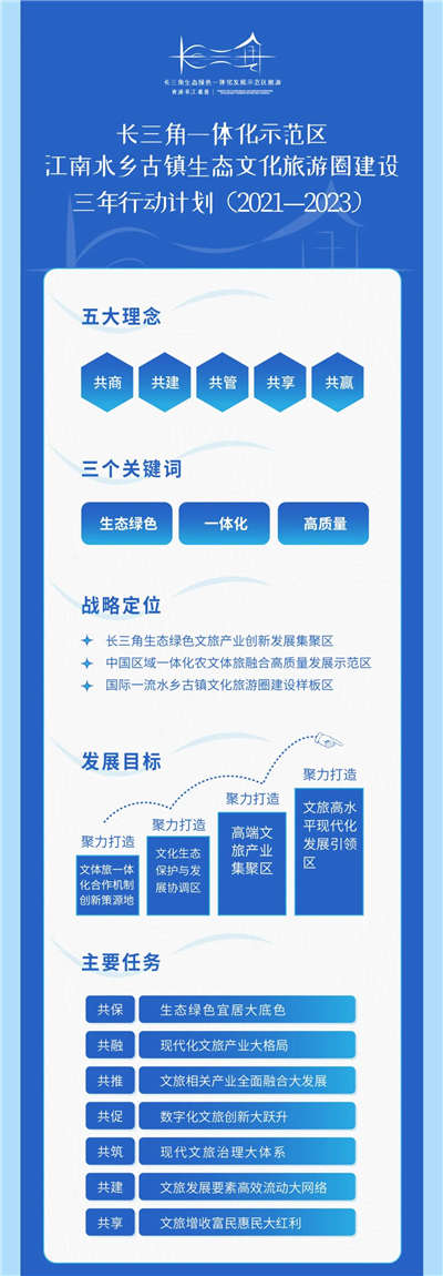 《長三角生態綠色一體化發展示范區江南水鄉古鎮生態文化旅游圈建設三年(2021-2023)行動計劃》是貫徹推動長三角一體化發展國家戰略的具體體現,是落實示范區總體方案的重要舉措和年度工作的要求,目的是將《長三角生態綠色一體化發展示范區江南水鄉古鎮生態文化旅游圈建設方案》所明確的內容,以項目化、清單化、可視化的形式進行細分,落實責任單位,明確推進時間,形成有效抓手,實現閉環管理,確保示范區文旅事業高質量一體化發展。