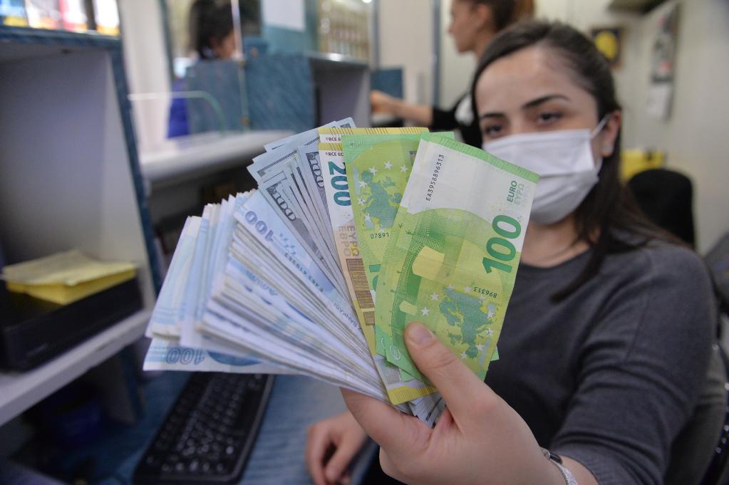 12月16日,一名女子在土耳其安卡拉一個貨幣兌換點展示貨幣。(新華社發,穆斯塔法·卡亞 攝)