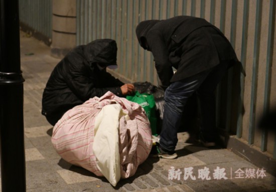 “今晚寒潮來了,睡在這里冷,和我們去救助站吧!泵鎸戎藛T再三勸說,三人卻并不太情愿,他們感謝救助人員的好意,但表示還是習慣在這里過夜。救助人員并不打算放棄,先是送上了棉被和泡面,接著和他們聊起了家常,還是希望三人能夠回心轉意至少到室內去避寒。