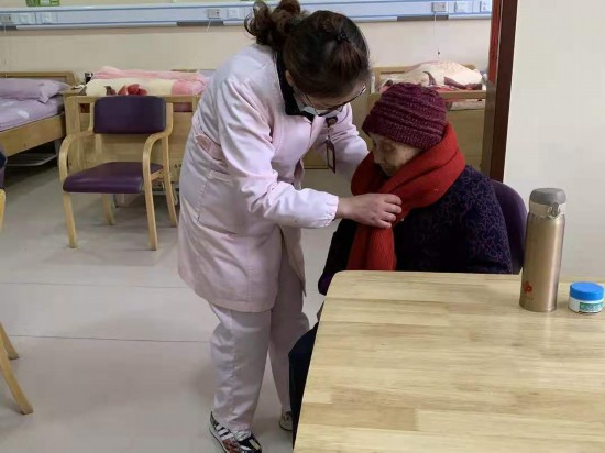 同樣的,在閔行區浦江社區春田長者照護之家,寒潮來襲之時,照護之家里也已經“全副武裝”——護理員分別上前問詢老人保暖情況,加蓋被子、毛毯,給每位老人派發暖水袋。保證熱水供應不間斷,為了確保安全,熱水均由護理員接打。院內保持室內恒溫,維持在20℃以上。