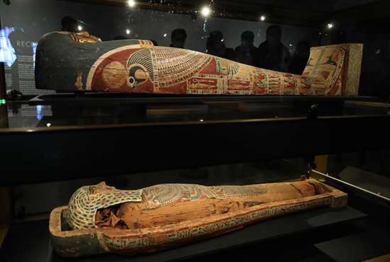 據介紹,“遇見古埃及·黃金木乃伊”是剛結束在北京的特展后,登陸上海的。本次展覽由中國文化國際旅行社有限公司、北京中創文旅文化產業集團主辦,展品來自英國曼徹斯特博物館、諾瑪德展覽(英國)有限公司。本次展覽分為7大展覽單元,人們將通過展覽探索多元文化社會中埃及人、羅馬人和希臘人對來世的期待。其中,最值得關注的展品當屬6具黃金木乃伊,來自公元1世紀左右“希臘-羅馬”時期的古埃及。展覽還包括約2000年前的11幅法尤姆木乃伊肖像和2具肖像木乃伊。羅馬時期的木乃伊畫像即所謂的“法尤姆肖像”,是古代世界最引人注目的肖像畫之一。除上述十分珍貴的展品外,本次展覽的展品中還包括12件鍍金彩繪木乃伊面具;18件古希臘風格的神像、雕塑、石碑;25件古埃及貴族陶罐和首飾;33件玻璃容器、莎草紙文件等稀世珍品。