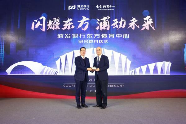 簽約儀式上,雙方宣布,東方體育中心將更名為浦發銀行東方體育中心,東方體育中心海上王冠、玉蘭橋、月亮灣也將更名為浦發銀行東方體育中心綜合館、浦發銀行東方體育中心游泳館、浦發銀行東方體育中心跳水館,這也是上海地區首個由金融機構冠名的大型體育場館。本次合作是兩大行業頭部企業在共同探討產業融合方向上取得的又一次進展。雙方將充分發揮各自優勢,積極整合資源,以東方體育中心為引擎,開發新產品、新模式,共同激活體育場館和數字金融的融合生態,探索體育產業資源平臺,打造上海金融品牌與體育品牌跨界合作的典范,提升上海國資國企品牌影響力,共同推進上海四個品牌建設。