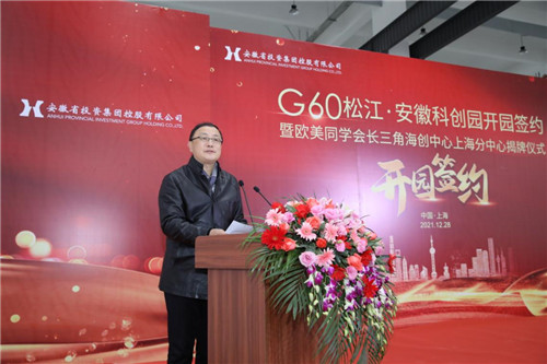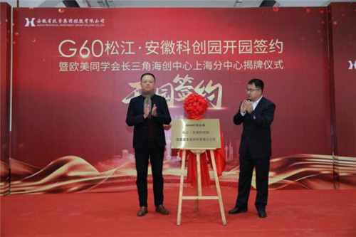 人民網上海12月29日電 12月28日上午,G60松江·安徽科創園開園集中簽約暨歐美同學會長三角海創中心上海分中心揭牌儀式成功舉行。