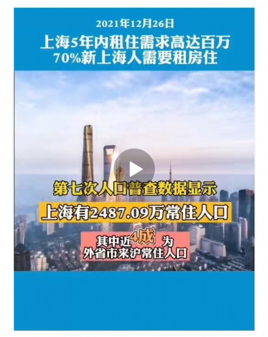 近日,某租房平臺發布一份上海長租市場報告引發關注。報告稱,根據“七普”統計的上海市平均每年新增常住人口18.52萬人、住建部統計的“70%新市民和青年人租房居住”等數據保守測算,上海市每年新增租房人口約13萬。報告因此認為,結合上海持續穩定的人才吸引能力,預計上海5年內新增租住需求將達65萬。報告發布后,“70%新上海人需要租房住”“上海5年新增65萬租住需求”等結論成為大家熱議的話題。