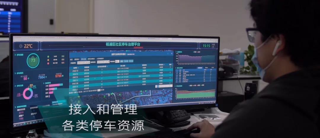 在楊浦區城市運營管理中心,智慧停車的系統大屏上正實時更新著各類數據,包括車位占有率、分時段車位使用情況等。