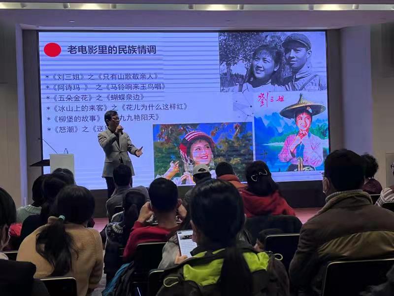 本次講座形式生動有趣,講座內容與現場演唱演奏以及歷史珍貴視頻資料相結合,主要包括“民歌與頌歌、民族歌劇里的紅色經典、四代歌唱家唱出的民族情、電影里民間故事蘊含的民族情調”等。