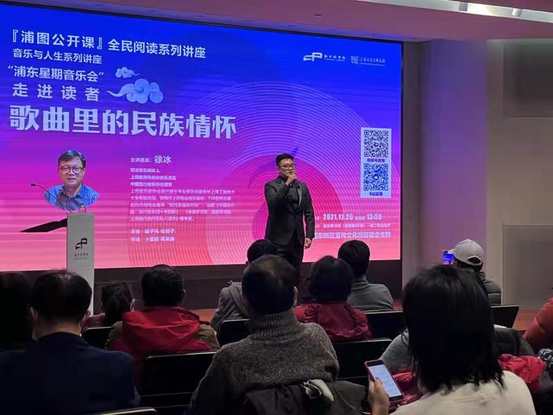 人民網上海12月30日電 12月26日,“浦東星期音樂會”系列音樂會及藝術講座在浦東圖書館舉辦。首期活動邀請到資深音樂媒體人、上海教育電視臺音樂總監徐冰和上海古凡交響樂團的青年音樂家們,為讀者帶來一堂別開生面的音樂講座《歌曲里的民族情懷》。
