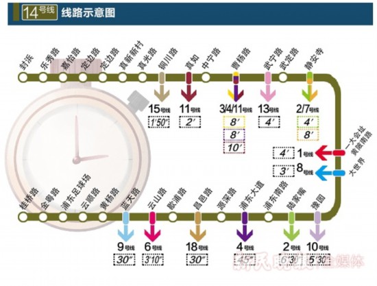 上海地鐵"換乘王"!實測14號線各站點換乘時間