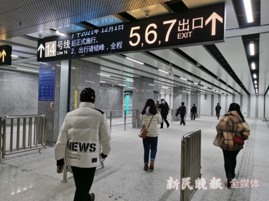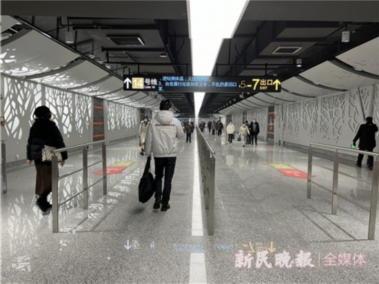 在曹楊路站,14號線可與3號線、4號線、11號線換乘。由于是“虛擬換乘”,乘客換乘時需出站。其間,地鐵出入口間的地面最短距離就有500米左右,如果加上地鐵出入口與檢票口的距離,有700米左右。