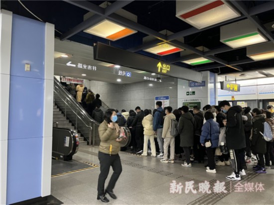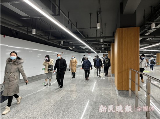 8時多,記者乘坐10號線來到豫園站。下車后,不少乘客起初有些茫然,但抬頭即可見到換乘指示。作為上海最深的車站,豫園站換乘需要乘坐長長的扶梯,而換乘通道內部裝飾則以上海脈搏為主題,別有韻味。