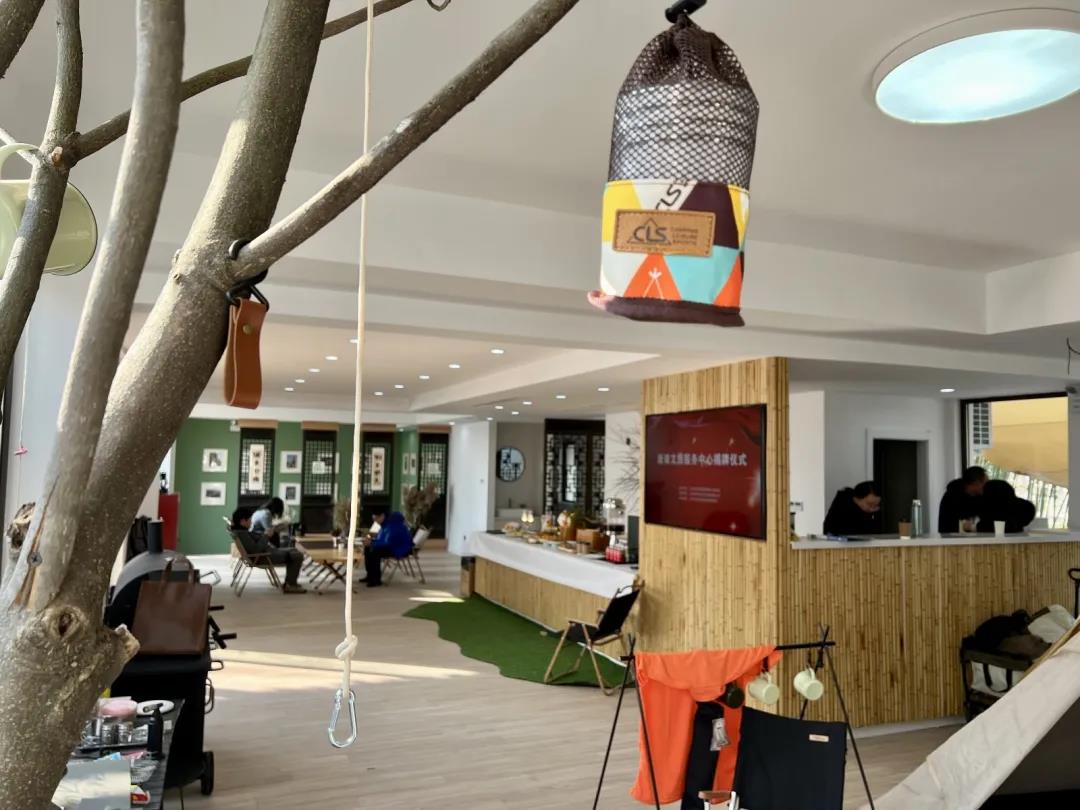 新南文旅服務中心是一幢亮眼的白色三層小樓,由閑置宅基地房屋改造而成。一樓接待大廳,布置得極具鄉野文化氣息。其中一處區域名為“浦東野攝”,是當地攝影師的活動場所,墻面上布置了攝影師拍攝的新場美景,據悉,以后這里每個月都有一場主題攝影活動;而二樓、三樓則有6間工作室,每一間都有不同的主題,野外搭設了白色帳篷、造型各異的樹枝,以及充滿運動氣息的吊床,極具“野趣”。