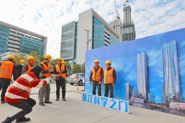 來與張江“科學之門”合張影,來滬建設者“新語心愿”賀新年