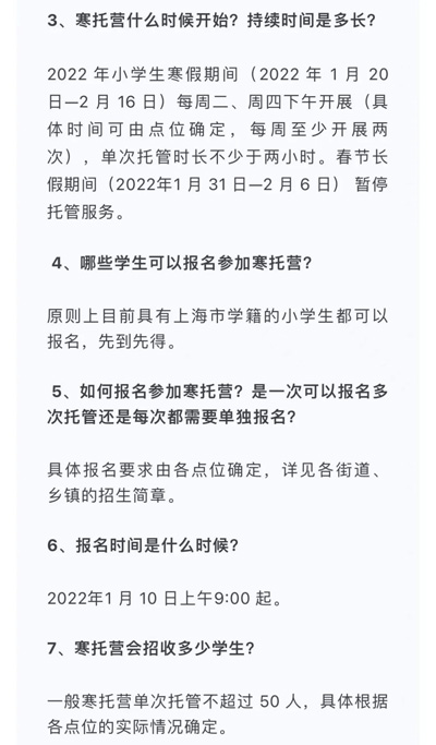 “愛心寒托營”即將開營!長寧區5個點位的報名信息在這里