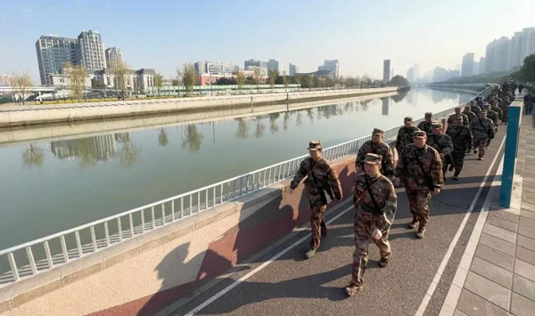 12月31日,長寧區人武部組織迎新年徒步拉練活動。此次徒步拉練沿蘇州河步道和長寧綠道進行,全程共15公里。