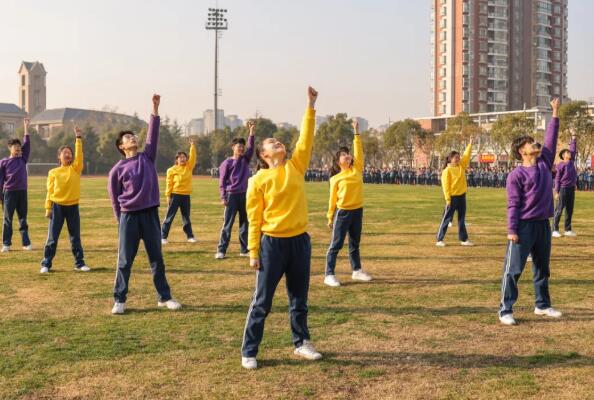 操場上,同一附舞蹈團以一首舞蹈快閃《少年》,開啟了辭舊迎新主題活動。參演學生由來自該校高一高二的16名非舞蹈特長生組成,他們沒有任何舞蹈基礎,每周堅持5至6小時的訓練,最終呈現出這一精彩的節目。