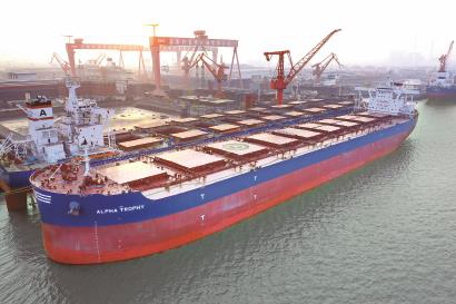 2022年元旦上午,中國船舶集團有限公司旗下上海外高橋造船有限公司聯合中國船舶工業貿易有限公司為希臘Alpha Bulkers公司量身訂造的21萬噸紐卡斯爾型散貨船“ALPHA TROPHY”號簽字交船,這是中國船舶企業新的一年完工交付的第一艘船,同時也開啟了中國船舶制造業2022年昂揚奮進的新征程。