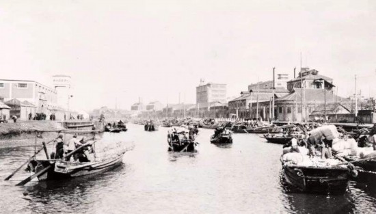 上海的蘇州河也很迷人,老照片上的蘇州河就是典型的江南水鄉。上海居民老章告訴我,小時候,他常去蘇州河畔,看從常熟、無錫劃來的船只。碼頭十分簡易,登船要小心走過又窄又長又晃蕩的板條。船兒運走城市垃圾,送來蔬菜糧食。船行很慢,靠搖櫓、竹撐,100公里行程需行三天三夜。