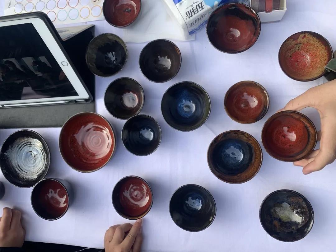 除了社區公益力量外,大學生也是本次義賣的主體之一。墨藍底色,如同浩瀚的銀河星系,點點紅光,如同一顆顆小小星球。這些帶著宇宙般浪漫色彩的手工茶杯,就出自上海理工大學滬江陶藝社團成員之手。