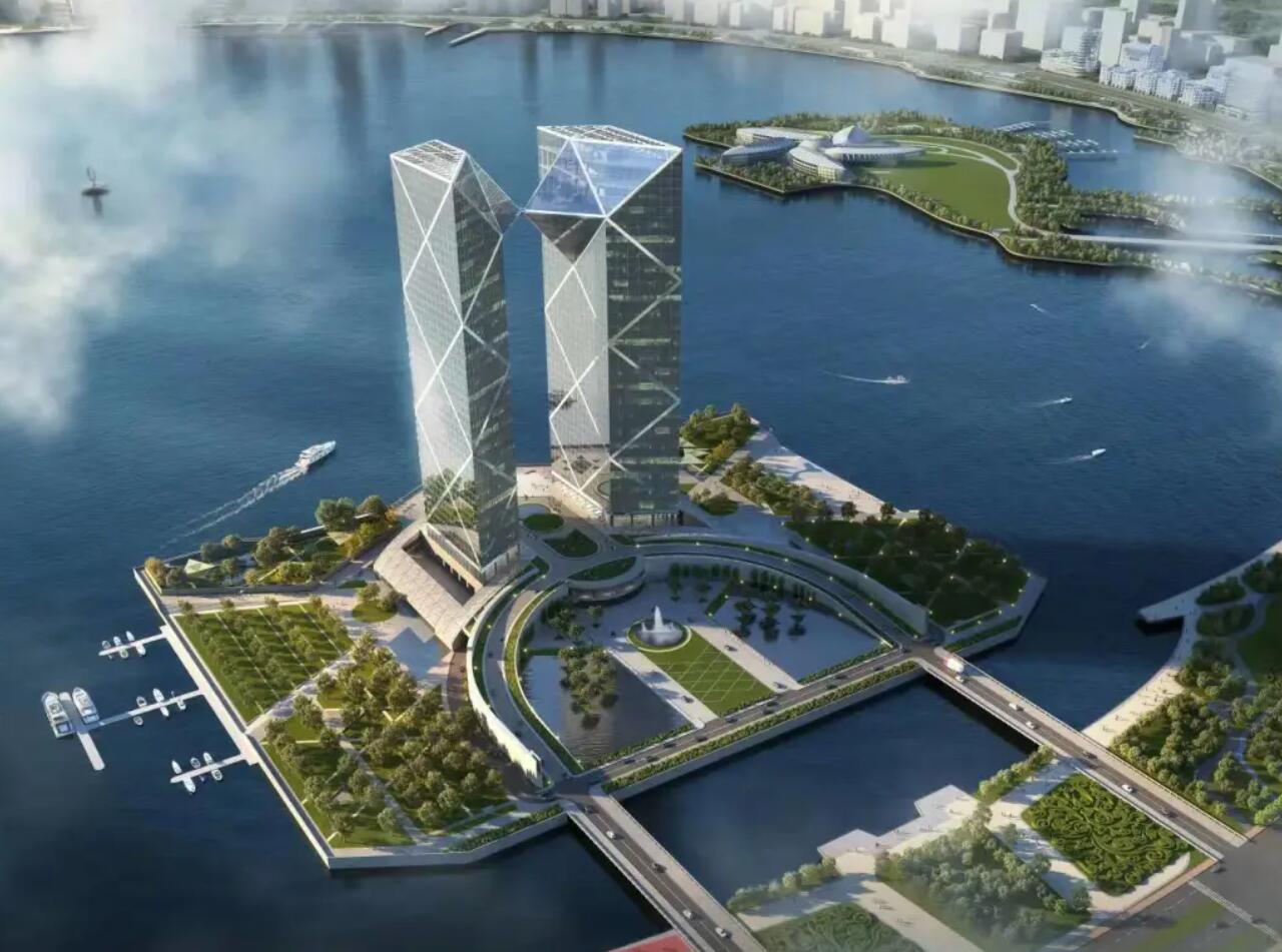 項目施工方中建二局項目總工韓旭介紹,該項目由2棟200米高的雙子塔樓組成,兩座雙子塔的造型獨特,象征著中國的“兩個一百年”奮斗目標,同時也有著“時代之門,璀璨之珠”的建筑意象。