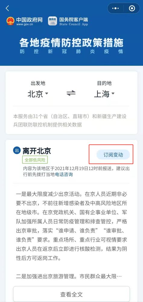 值得一提的是,各地最新防疫政策如何查詢,市民可進入國務院客戶端小程序了解各地疫情防控政策措施,訂閱關注的地區及時掌握該地疫情防控政策變化。當所訂閱地區防控政策發生變化時,你將在微信的服務通知里收到提醒。也打開微信、百度、支付寶等便捷查詢。