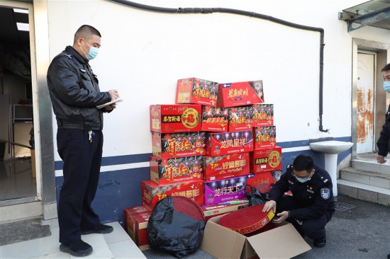 上海警方供圖 2021年12月底,上海偵破一起非法經營煙花爆竹案,搗毀非法煙花爆竹分銷、儲存窩點,現場查獲各類煙花爆竹達1000余箱,為今冬以來數量最多。2021年11月以來,上海全市公安機關共查處煙花爆竹違法犯罪案件45起,收繳非法煙花爆竹1800余箱,采取刑事強制措施9人,行政拘留10人。