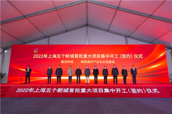 人民網上海1月6日電 1月6日,上海五個新城首批重大項目集中開工儀式在嘉定聯影醫療產業化示范基地二期建設場地舉行。上海市新城規劃建設推進協調領導小組主要成員單位領導,嘉定區委、區政府主要領導和其他四個新城所在區和管委會領導等嘉賓出席。同時,全市五個新城同步以視頻連線的方式舉行了集中開工活動。