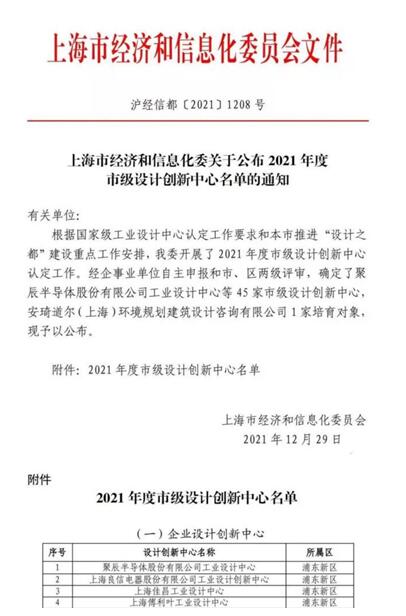 其中,浦東新區攬得四席,包括聚辰半導體股份有限公司工業設計中心、上海良信電器股份有限公司工業設計創新中心、上海佳昌工業設計中心和上海傅利葉工業設計中心。