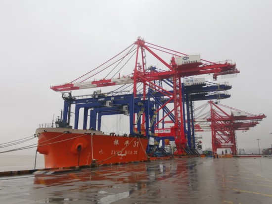 洋山港集裝箱吞吐量再創新高,新年首批新增橋吊順利進場